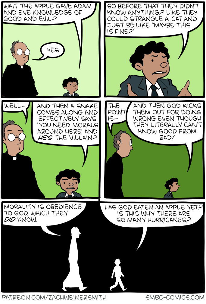 They got the order of life mixed here and there, but at least it started in the sea. Adam and Eve’s curse is by far the most interesting bit.