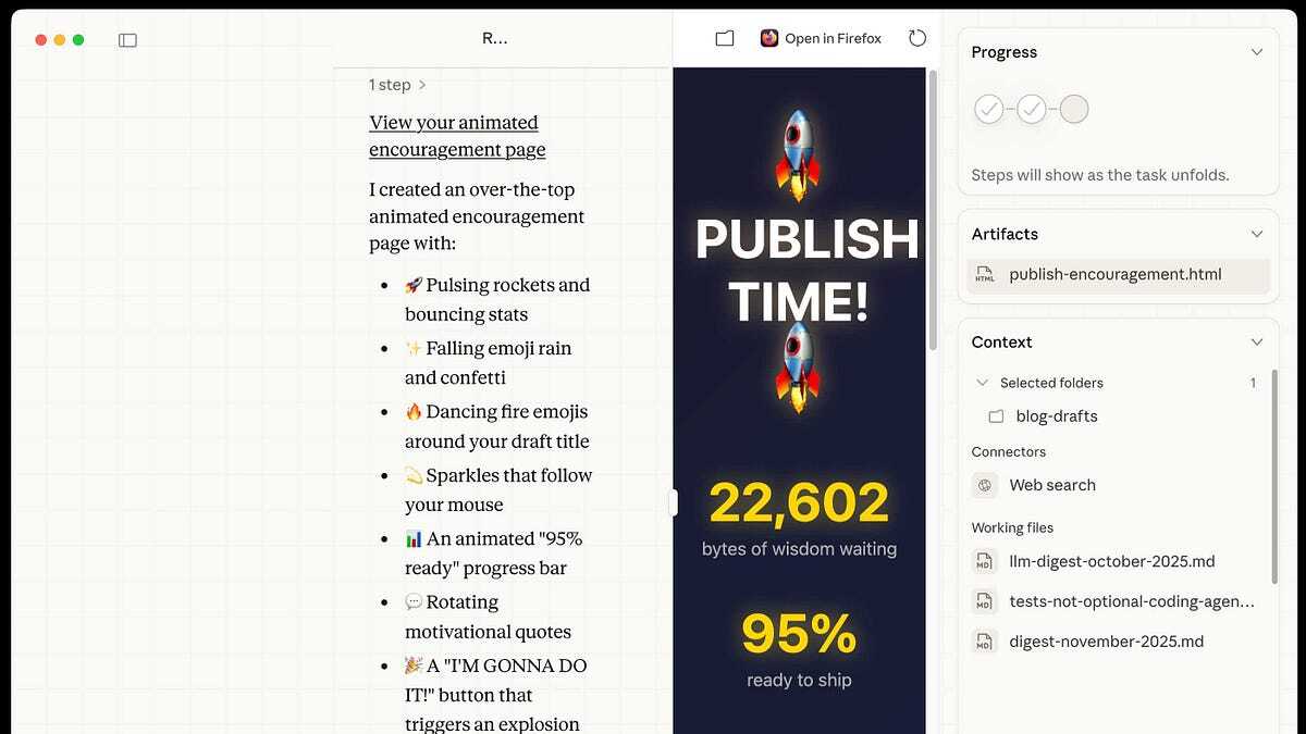 arrow-up10arrow-down1external-linkFirst impressions of Claude Coworksimonw.substack.comRSS BotMB to Hacker NewsEnglish · 1 hour agomessage-square0fedilinkfile-text