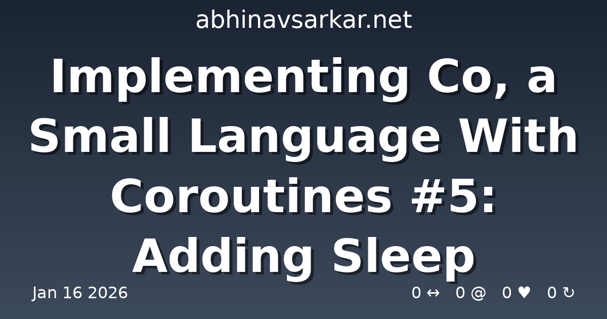 arrow-up10arrow-down1external-linkImplementing Co, a Small Language With Coroutines #5: Adding Sleepabhinavsarkar.netRSS BotMB to Lobste.rsEnglish · 4 hours agomessage-square0fedilinkfile-text
