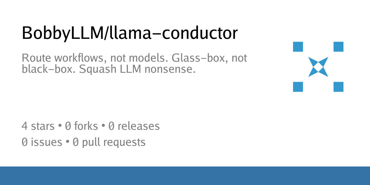 arrow-up12arrow-down1external-linkllama-conductor is a router + memory store + RAG harness to force models to behave like predictable componentscodeberg.orgRSS BotMB to Lobste.rsEnglish · 6 hours agomessage-square0fedilinkfile-text