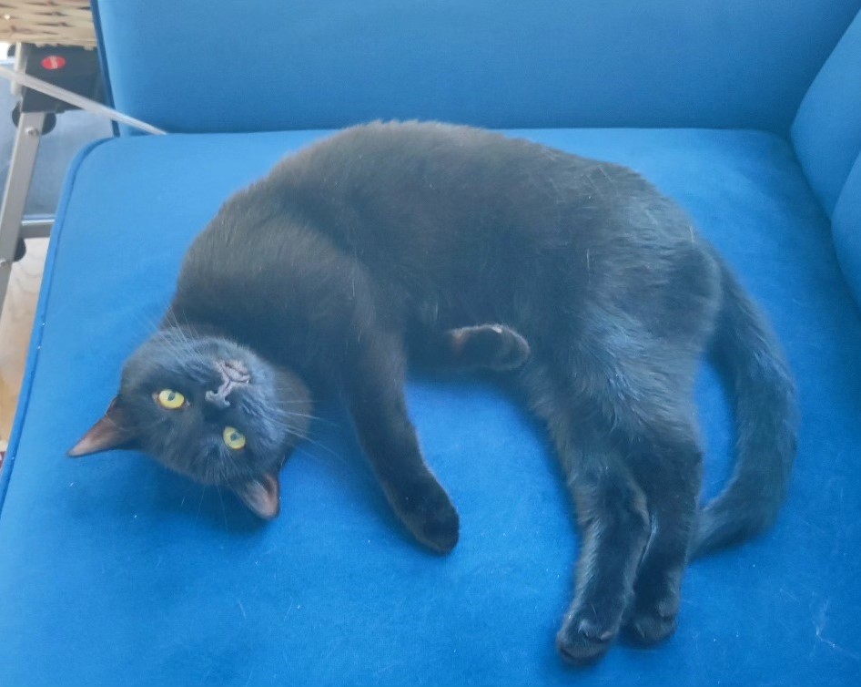 I do cat sitting for my sister and brother in law’s cat from a rescue shelter named Dinky. She’s very shy and nervous but got a lot friendlier and braver. Not a lap cat but loves to play.