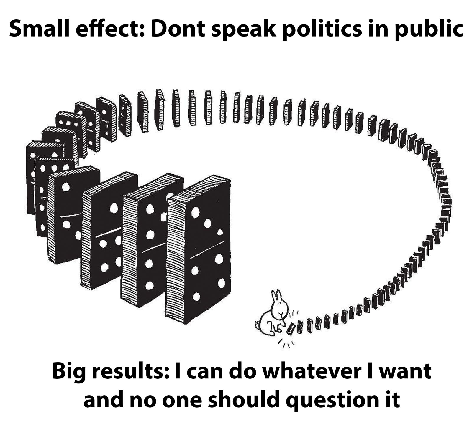 Is this not a victim-blaming meme telling me to shut up and stay at home? The last domino is going to hit the rabbit.