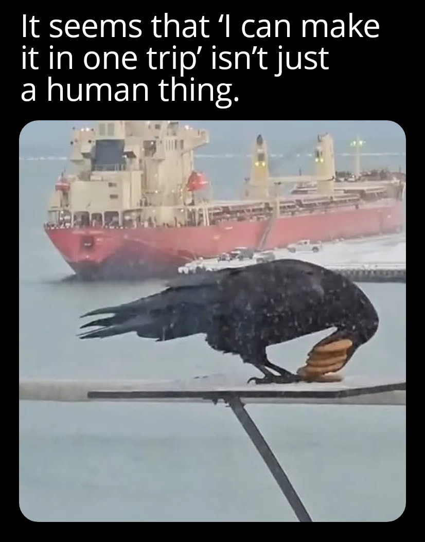 Ok, so now I have a super unethical experiment to propose: superglue longer plastic beaks on ravens’ beaks and see if they learn to carry more freebies with their new superbeaks…