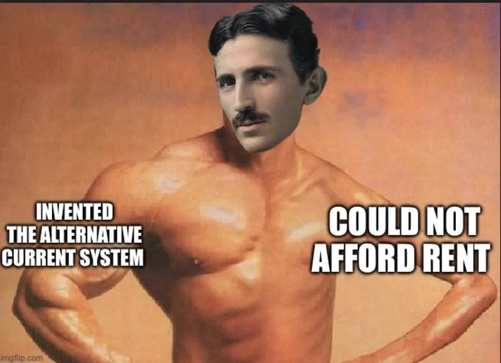 fuck, telsa gave the world so much good and got done dirty but yet certain persons today who this fuck underage children, gives their wives a bad std and still some of the richestest people in history, burn the whole fucking system down