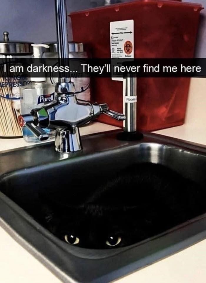 All dark and sneaky until someone doesn’t find him and turns on the cold water.