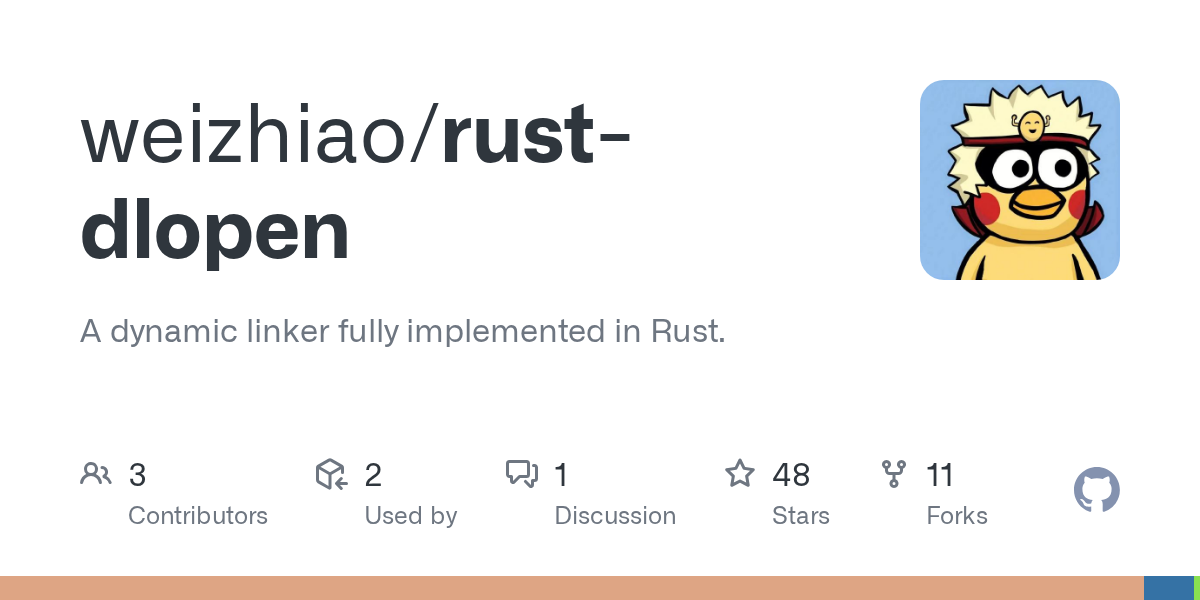 arrow-up12arrow-down1external-linkrust-dlopen: A dynamic linker fully implemented in Rustgithub.comRSS BotMB to Lobste.rsEnglish · 2 months agomessage-square0linkfedilinkfile-text