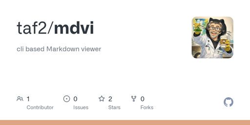 arrow-up11arrow-down1external-linkMarkdown CLI viewer with VI keybindingsgithub.comRSS BotMB to Hacker NewsEnglish · 25 days agomessage-square0linkfedilinkfile-text