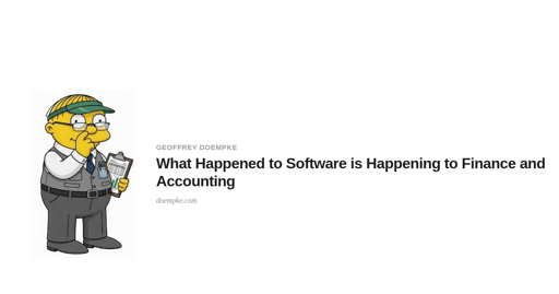 arrow-up1-2arrow-down1external-linkWhat Happened to Software Is Happening to Finance and Accountingdoempke.comRSS BotMB to Hacker NewsEnglish · 6 days agomessage-square1linkfedilinkfile-text