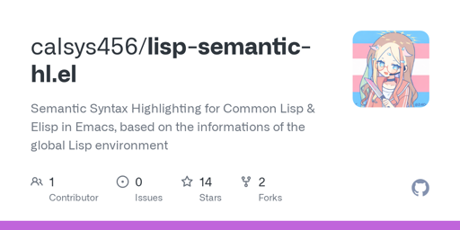 arrow-up13arrow-down1external-linkSemantic Syntax Highlighting for Lisp in Emacsgithub.comRSS BotMB to Hacker NewsEnglish · 30 days agomessage-square0linkfedilinkfile-text