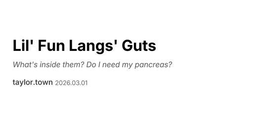 arrow-up12arrow-down1external-linkLil' Fun Langs' Gutstaylor.townRSS BotMB to Hacker NewsEnglish · 9 days agomessage-square0linkfedilinkfile-text