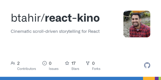 arrow-up12arrow-down1external-linkShow HN: React-Kino – Cinematic scroll storytelling for React (1KB core)github.comRSS BotMB to Hacker NewsEnglish · 10 days agomessage-square0linkfedilinkfile-text