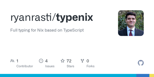 RSS BotMB to Lobste.rsEnglish · 2 days agotypenix: Full typing for Nix based on TypeScriptgithub.comexternal-linkmessage-square0linkfedilinkarrow-up12arrow-down10file-text