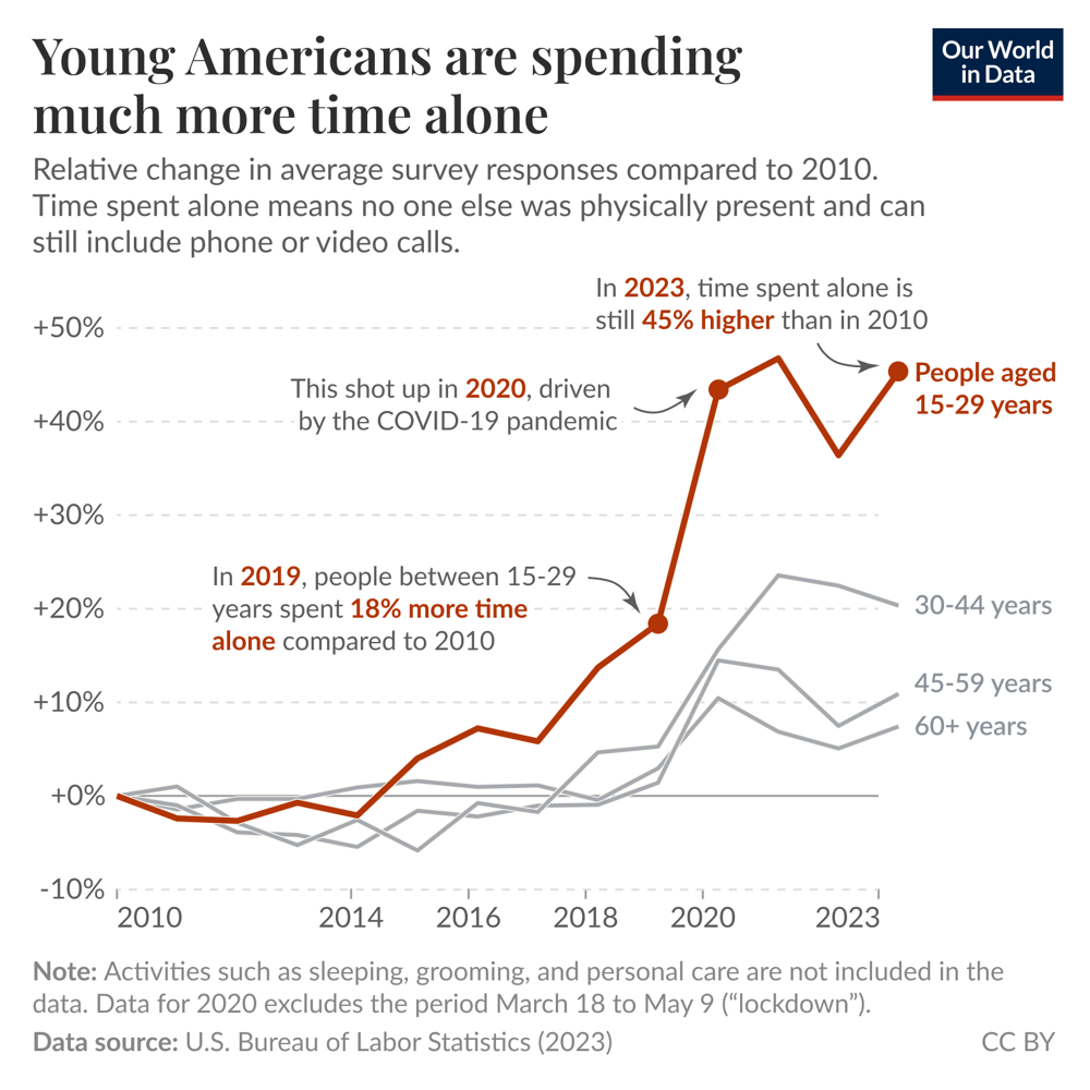 arrow-up11arrow-down1external-linkYoung Americans spend much more time alone than they did fifteen years ago | 4 hours to 6 daily, biggest increase in any groupplus-squareourworldindata.orgBountifulEggnog [she/her]@hexbear.net to news@hexbear.netEnglish · 10 days agomessage-square0fedilink