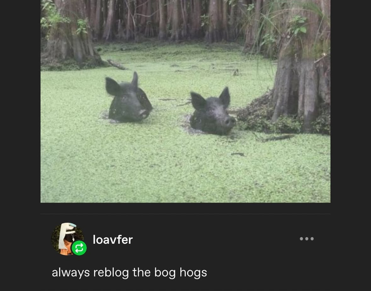 bees@sh.itjust.works to Lemmy Shitpost@lemmy.world · 7 months agoBog hog sh.itjust.worksimagemessage-square0fedilinkarrow-up11arrow-down10